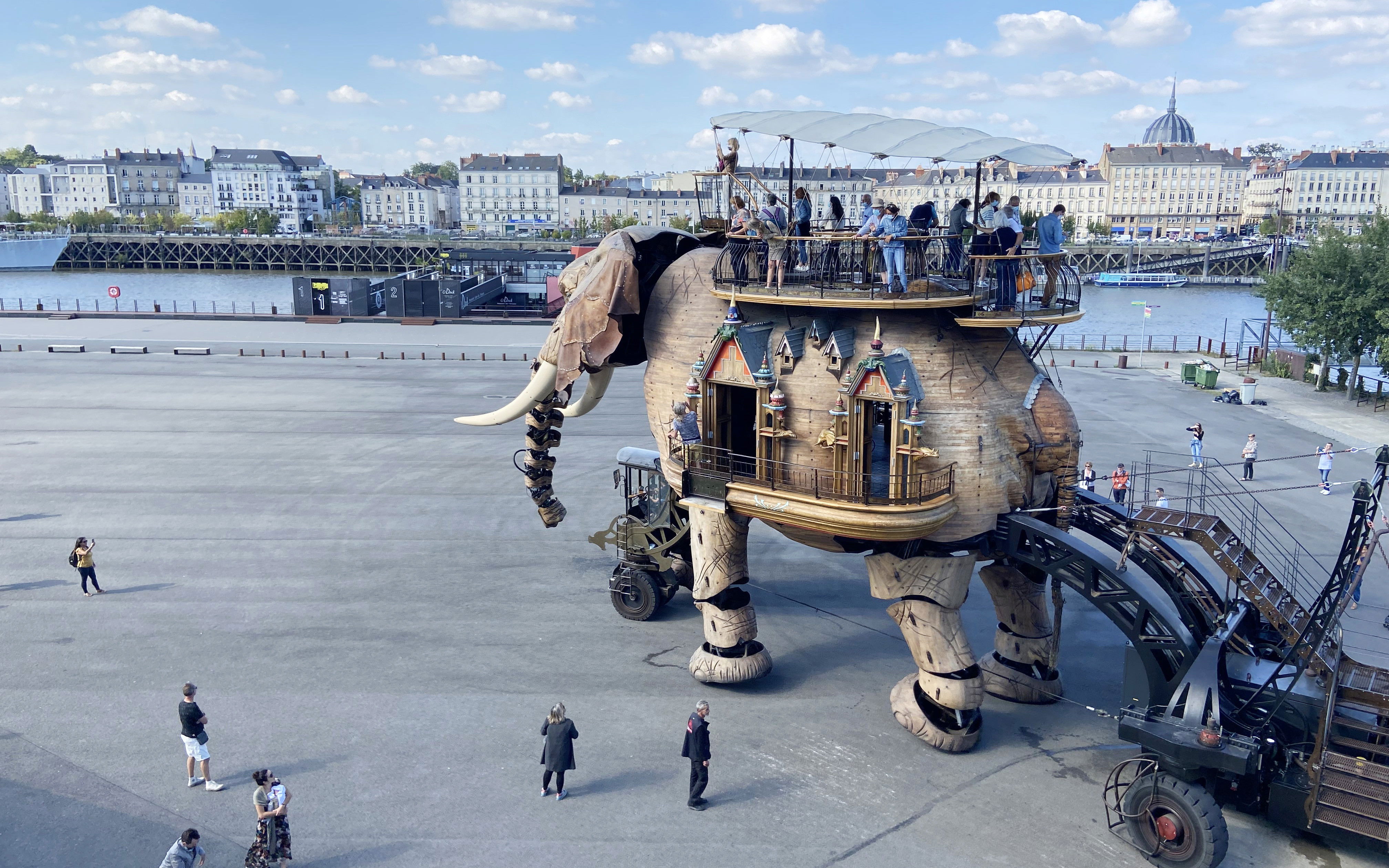 Nantes er også kendt for sin livlige kunstscene, som især kommer til udtryk i Les Machines de l'Île, et fantasifuldt projekt, der kombinerer kunst og teknologi. Her kan man bl.a. opleve den berømte mekaniske elefant Le Grand Éléphant, som går rundt på området og giver passagerer en uforglemmelig tur. Projektet er inspireret af værkerne af Jules Verne, som blev født i Nantes, og af Leonardo da Vinci's opfindelser. Le Grand Éléphant er ikke kun en turistattraktion, men også et symbol på Nantes' innovative ånd og engagement i kunst og kultur.